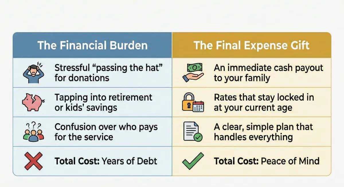 Ensure your funeral and final medical costs are completely covered with a simple Final Expense plan. No medical exams required and rates that never increase—guaranteed for life.